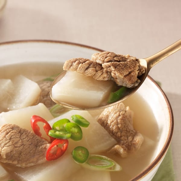 부드러운 소고기와 시원한 무가 어우러져 부담 없이 즐길 수 있는 음식이며 아침 식사나 따뜻한 한 끼 식사로도 매우 좋습니다.